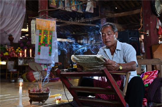在賧佛的日子里,傣族老人穿戴整齊,在固定的時間集中到佛寺食宿持戒,聽經(jīng)坐禪,懺悔自己的過錯。年輕人則負責老人進洼期間的飲食后勤。