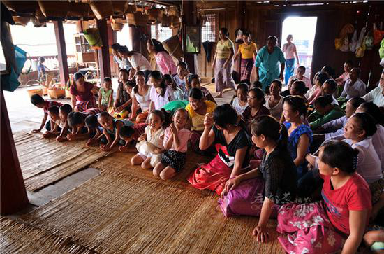 “關(guān)門節(jié)”開始后,奘房里的僧侶什么地方都不能去,要在佛寺里誦經(jīng)拜佛,并專候每七天一次的男女信徒的賧拜;拜佛的人不能遠離家庭或到別家去過夜;任何人不得進佛屋,上佛臺,拿佛的東西等;信徒每個月要到奘房賧佛三次,一般是初九、十五、二十三這三天;佛教信徒按照不同派別,攜帶著簡便的行李(香花、佛幡、香燭等),分別前往奘房朝拜、聽誦經(jīng)文、接受訓誡。